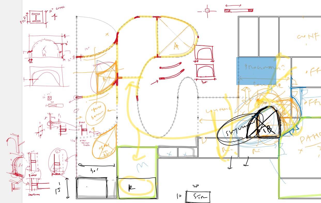 Building a studio culture in a virtual class room requires additional effort, empathy, time, and most importantly, a “shared space.” Concept Board is a virtual shared space that facilitates desk crits. The drawing and commenting tools in Concept Board, whether used alone asynchronously or synchronously during Zoom calls, approximate the in-person desk crit sessions of faculty and student drawing together on the same drawing.