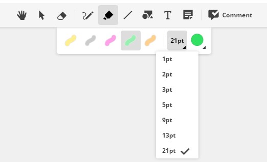 Similar to an actual highlighter, makes thick lines that are see-through. Different line weights and color options available. Example below.