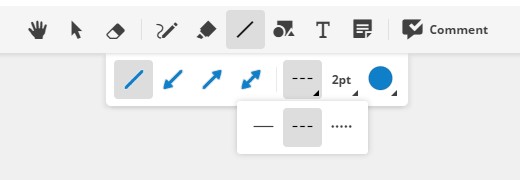 Select two points to draw a straight line. Dashed lines and different line weights are useful for diagramming.