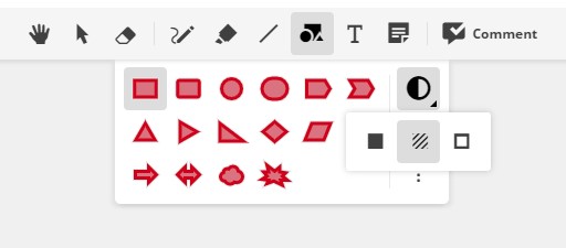 Draw preset shapes and assign opaque, translucent, or transparent fill options.
