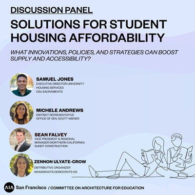 AIA SF is hosting a panel discussion on the topic of student housing affordability. All are invited to attend!