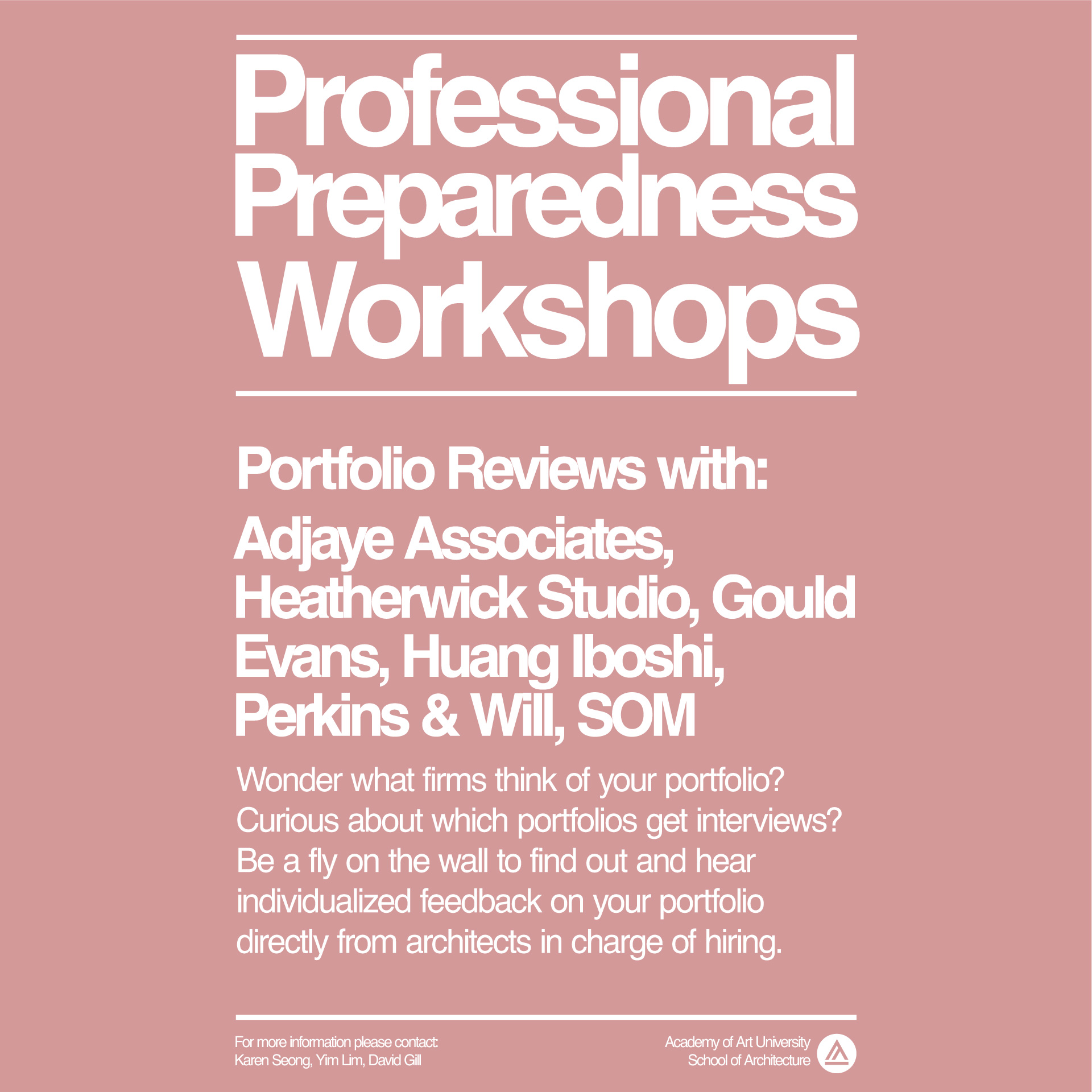 The portfolio reviews are offered to participating students only. The recordings will be made available below. Hear directly from architects responsible for making hiring decisions what they look for in a portfolio.
