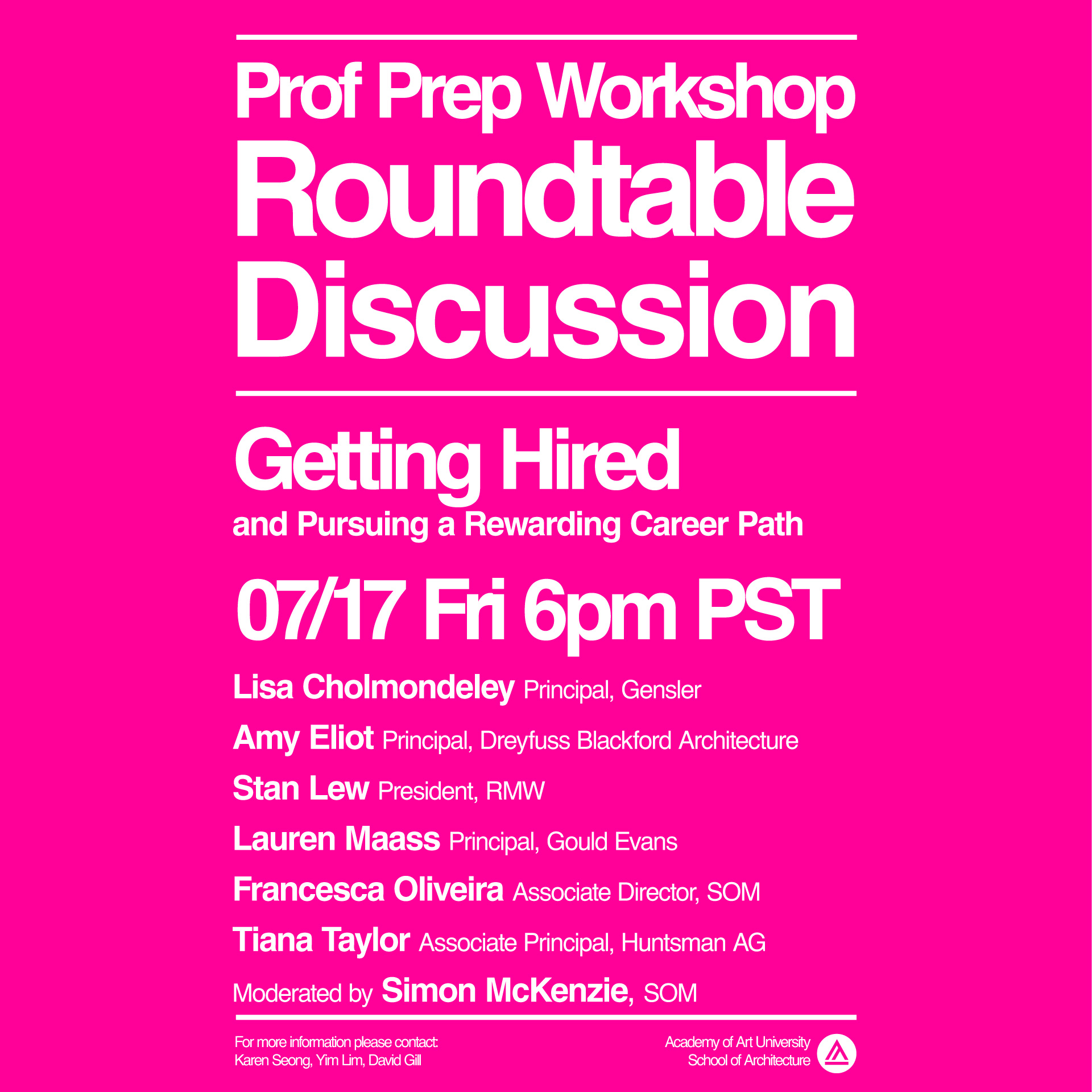 We are excited to announce the panelists who have generously agreed to donate their time and wisdom. As mentors to young architects and students, they will be answering questions about entering and thriving in the profession of architecture.