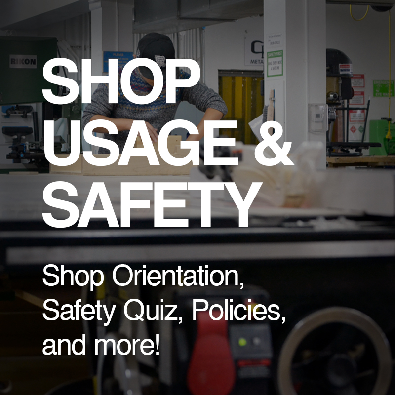 To view shop policies and safety rules, please read Basic Shop Proficiency Guide– 2020
