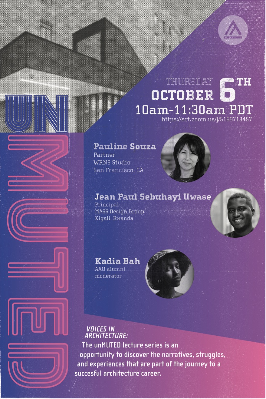 The unMUTED lecture series centers the diverse voices in architecture to lift up the narratives, struggles, and successes of architects’ journeys. Previously called Ethics and Leadership, we are celebrating our 9th year of bringing architects’ stories to architecture students. Our fall panel consists of the accomplished and amazing voices of: